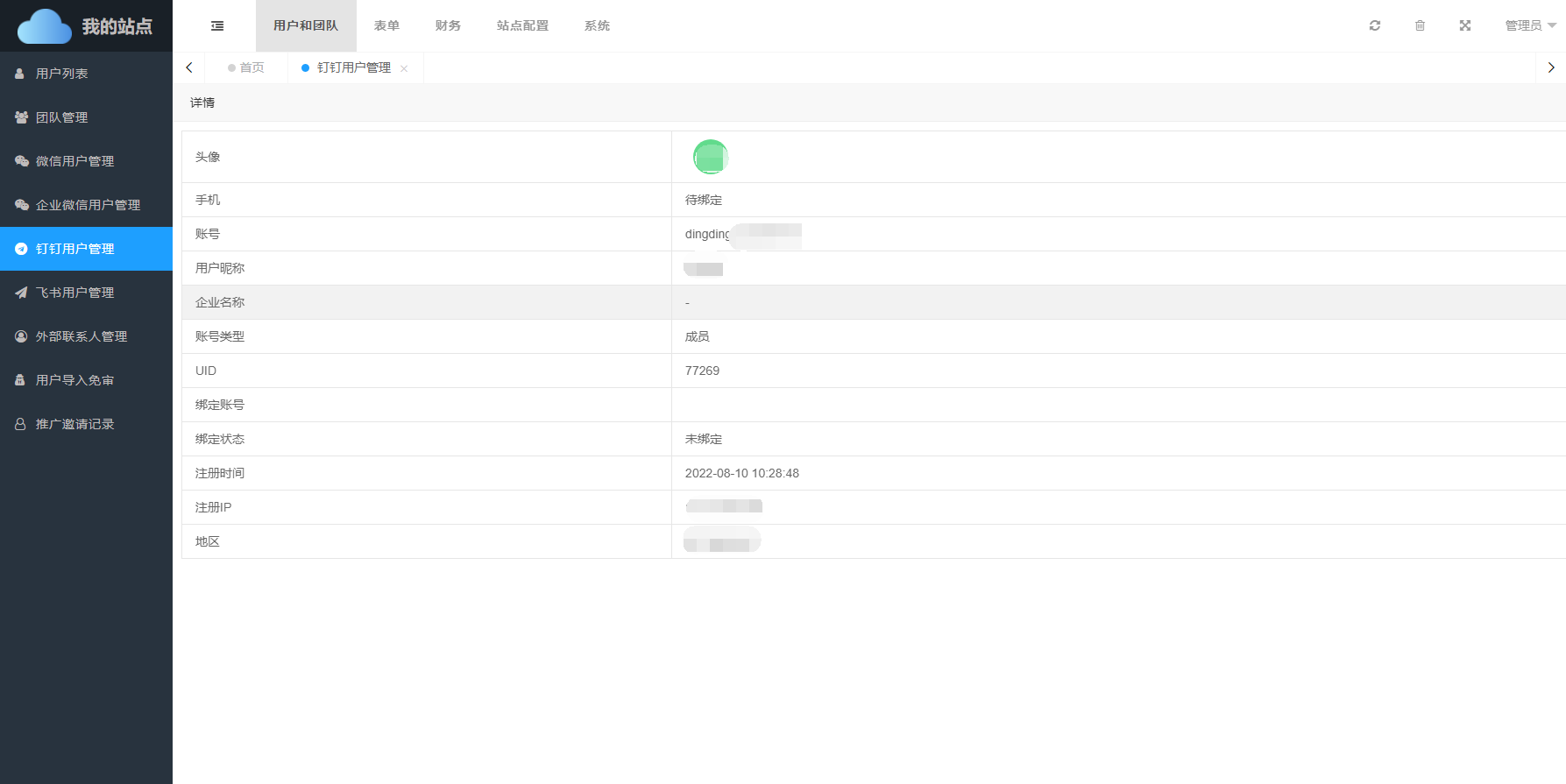 已绑定、未绑定, - 注册时间:钉钉用户注册时间