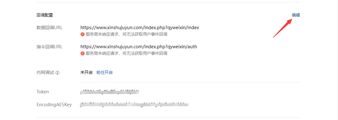回到【应用开发】->【网页应用开发】当中,进入新添加的应用,找到回调配置,点击后面的编辑
