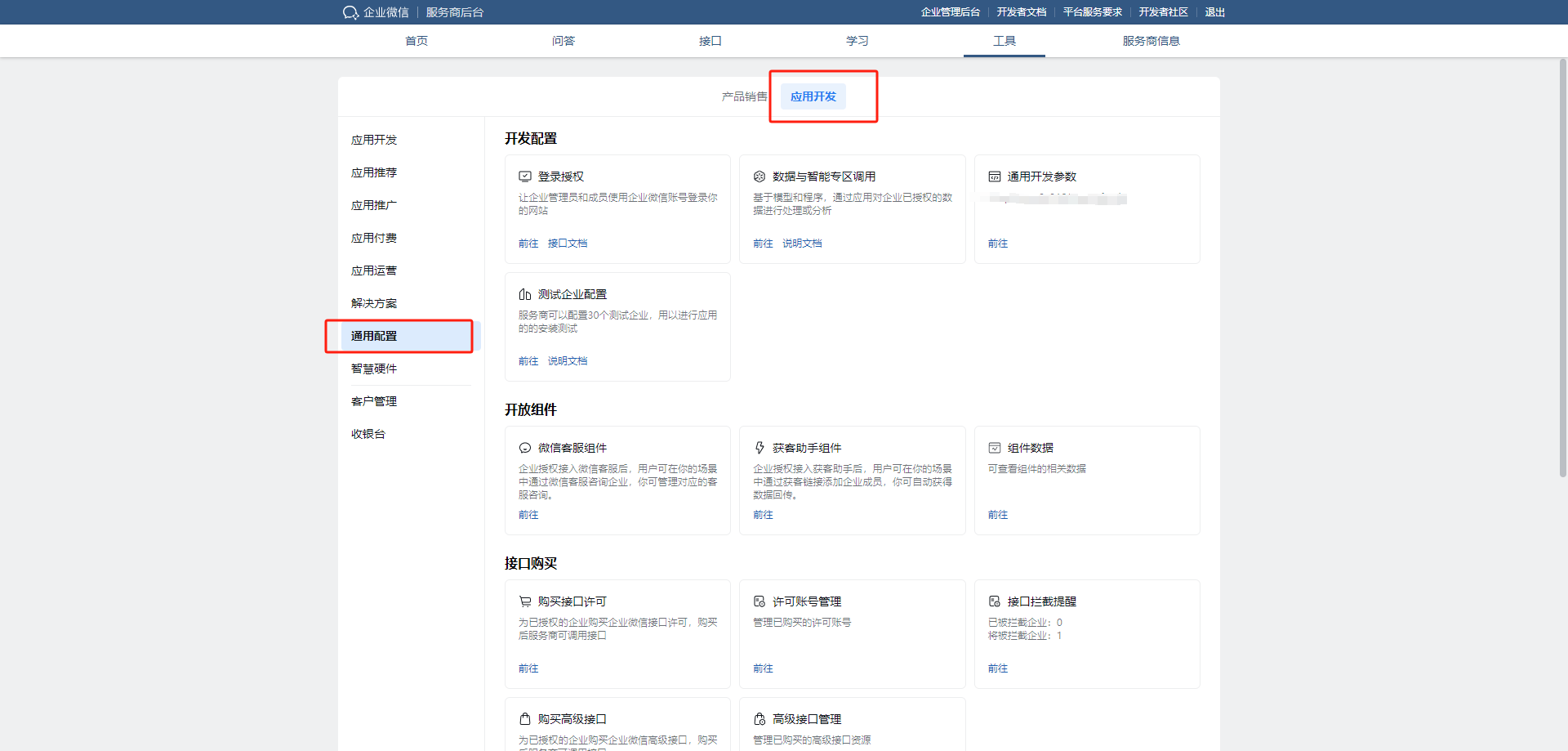 依次进入【第三方管理】->【企业微信应用配置】->切换到【企业微信第三方配置】
