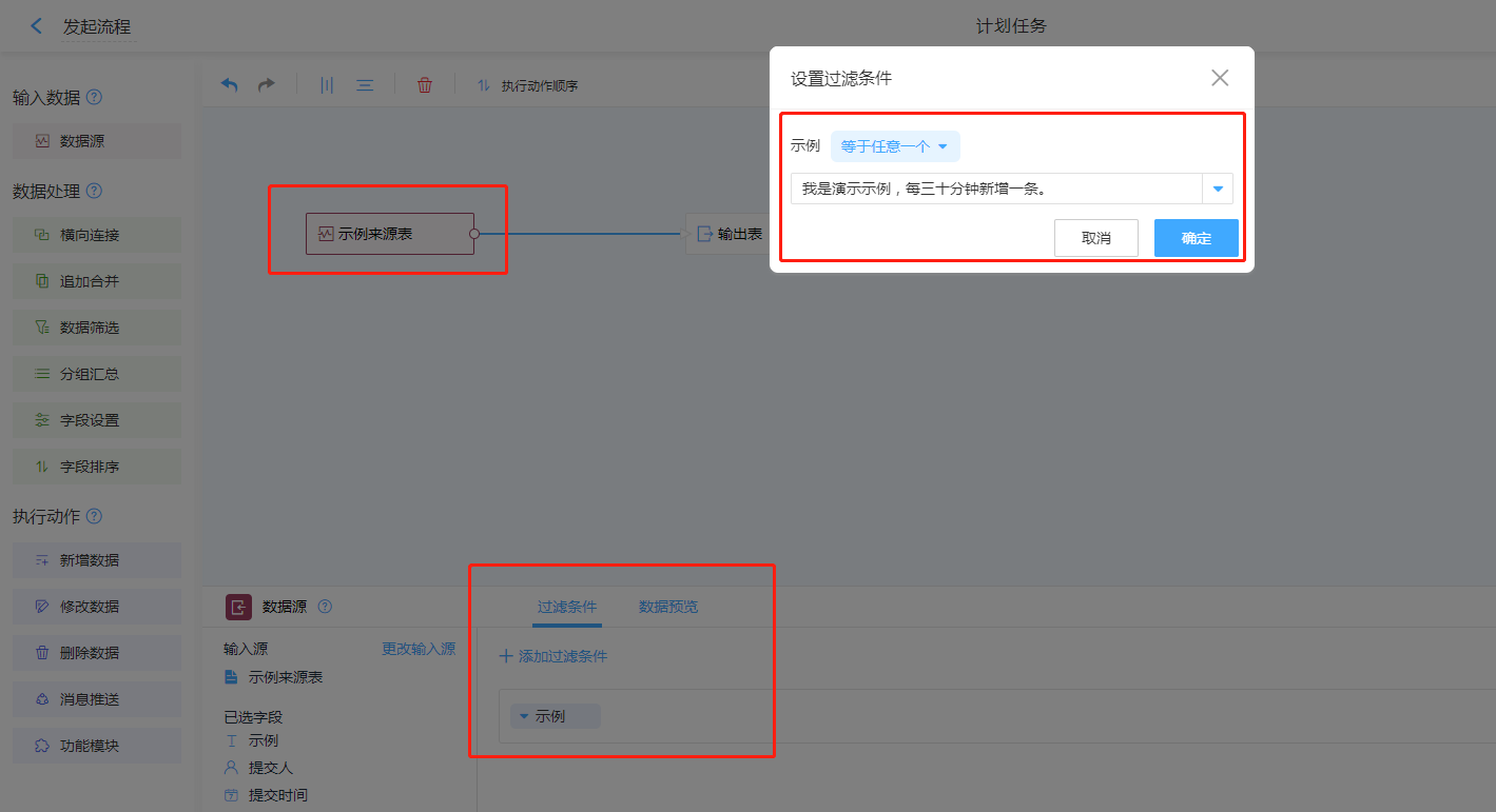 点击此链接【计划任务 - 发起流程】可以跳转至饰配汇官网 >>> 解决方案 >>> 数据助手功能示例进行实际操作效果演。