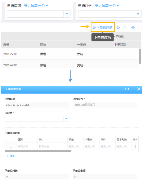 | 一键操作下单到供应商 |