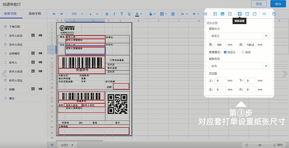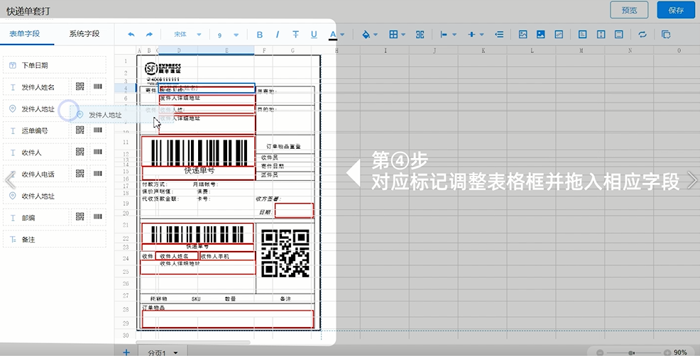 对于需要使用二维码或条形码管理大批量的物品的企业,如:电商、物流..,在设置打印模板时拖动二维码/条码字段至表单里即可轻松打印,实时获取商品信息。
