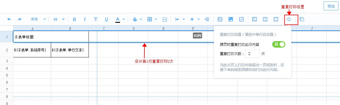 在打印的过程中,常常需要将部分内容固定在每一页里打印出来,通过设置重复打印就能实现了。 如:将表格头部在每一页中都显示一份