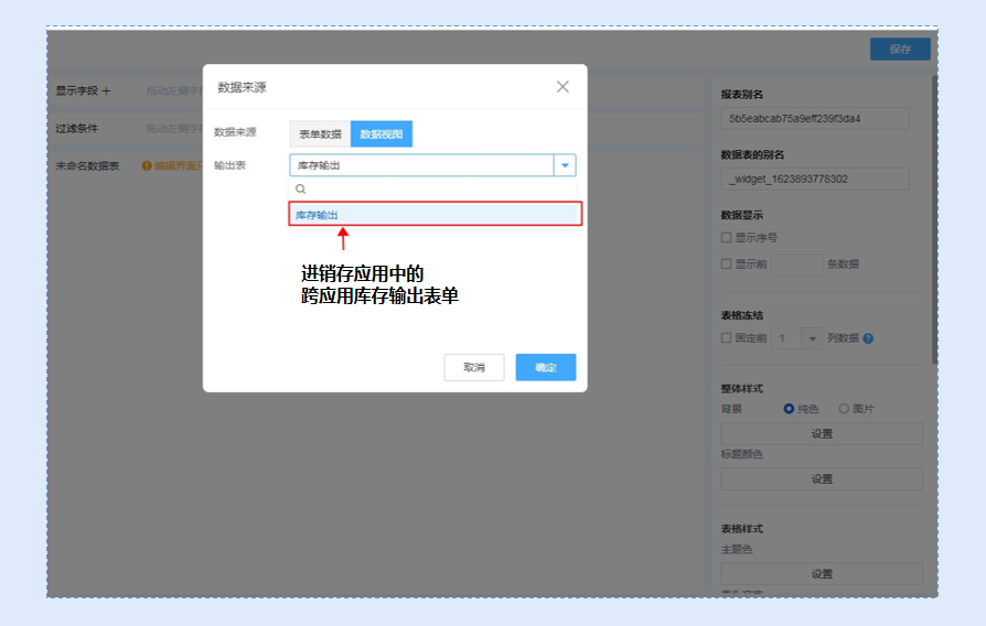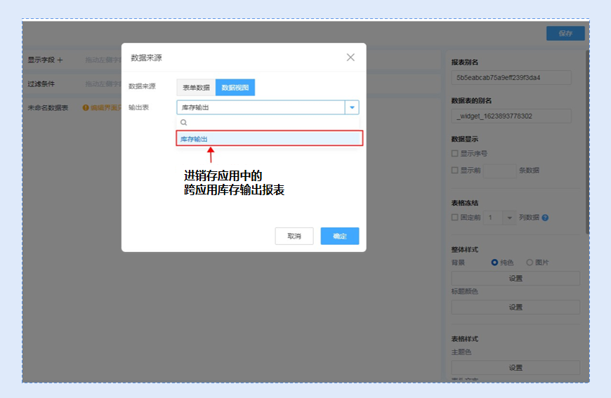例如:在任意应用中创建报表,数据源选择进销存应用的跨应用报表。