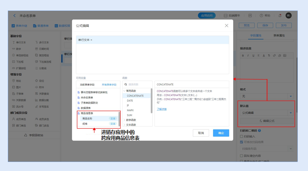 · 控件默认值设置公式编辑时使用跨应用表单