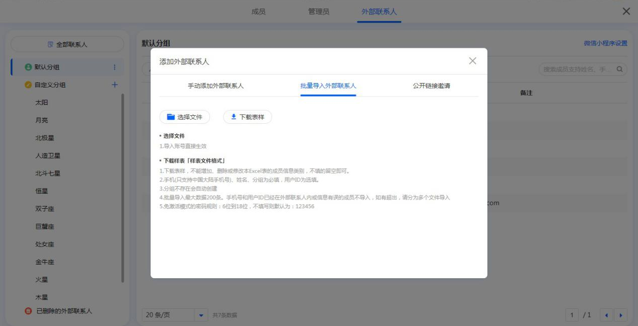 | 批量导入外部联系人 |
