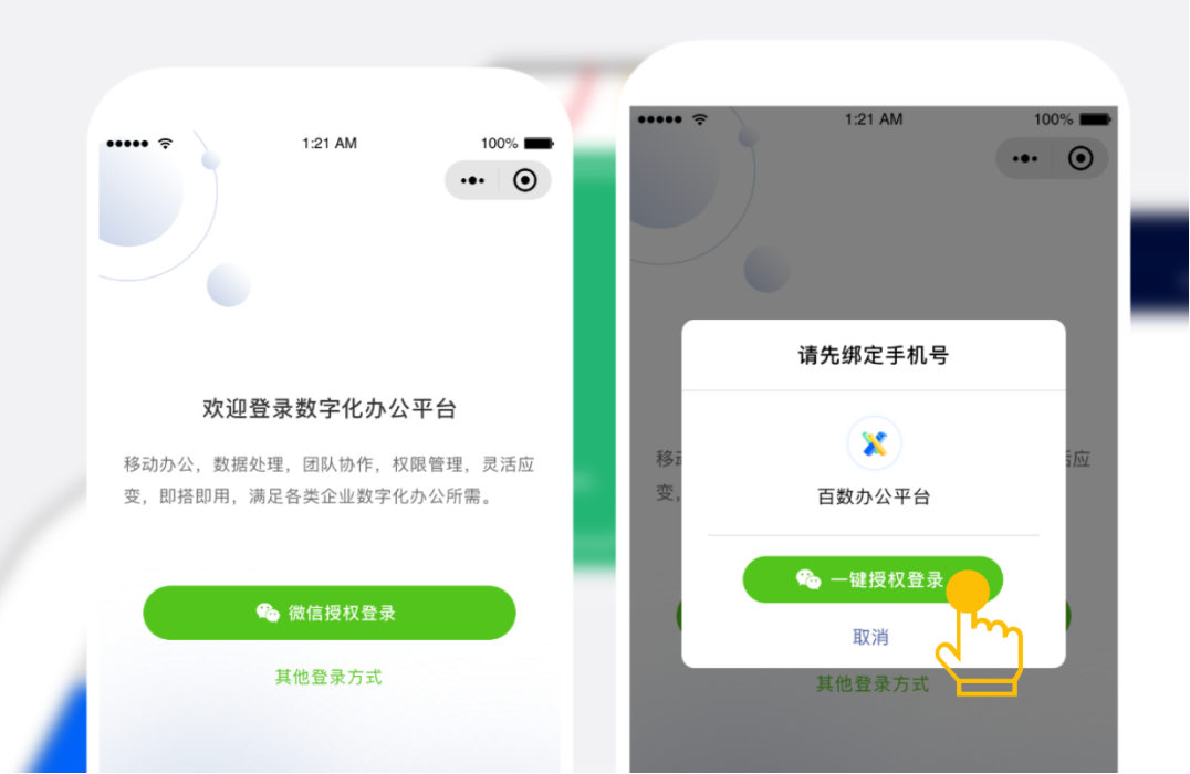 3.微信一键授权登录小程序,所有信息自动同步到公众号及PC端使用