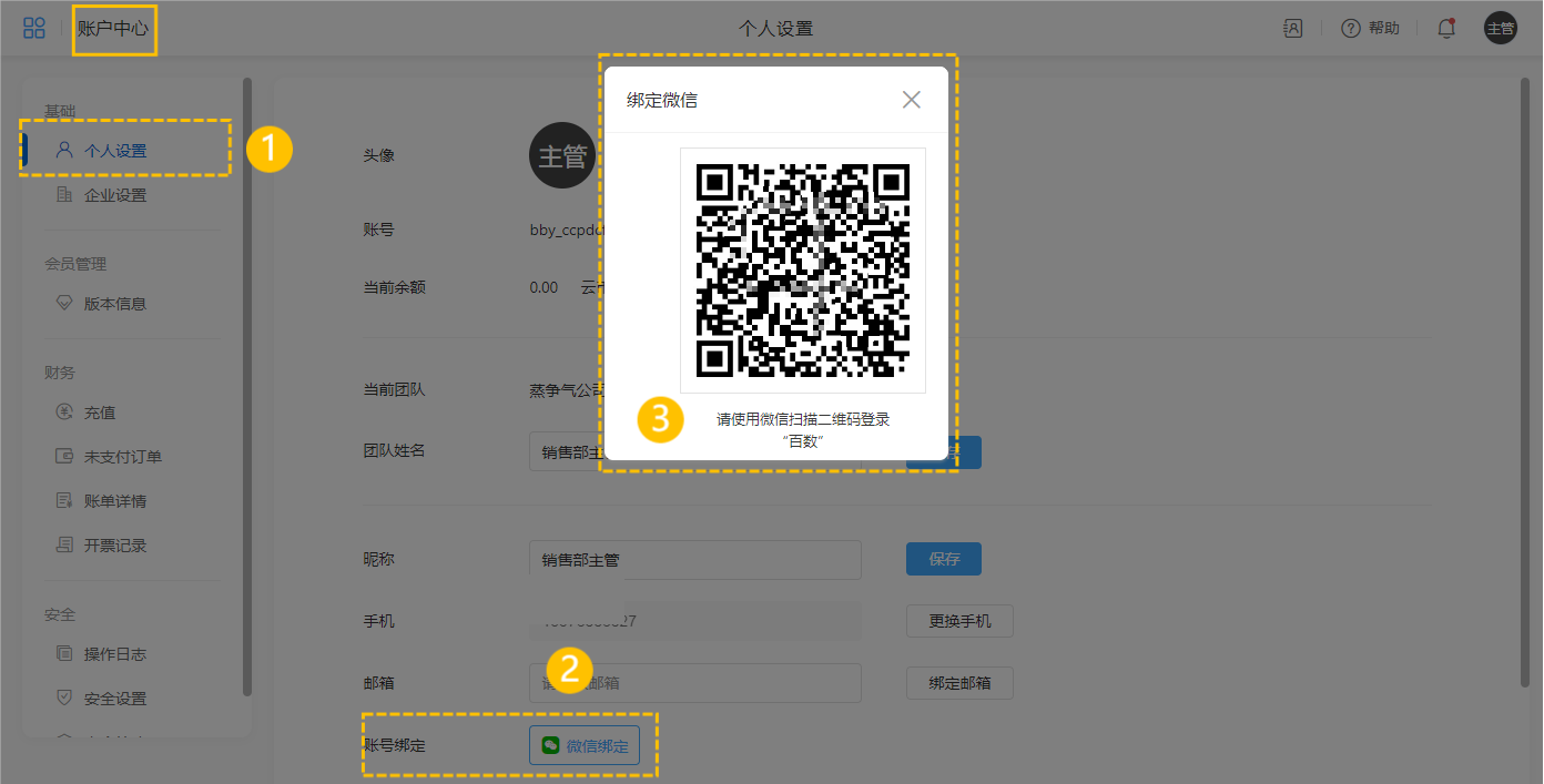 1.在饰配汇个人中心将饰配汇账号扫码绑定微信