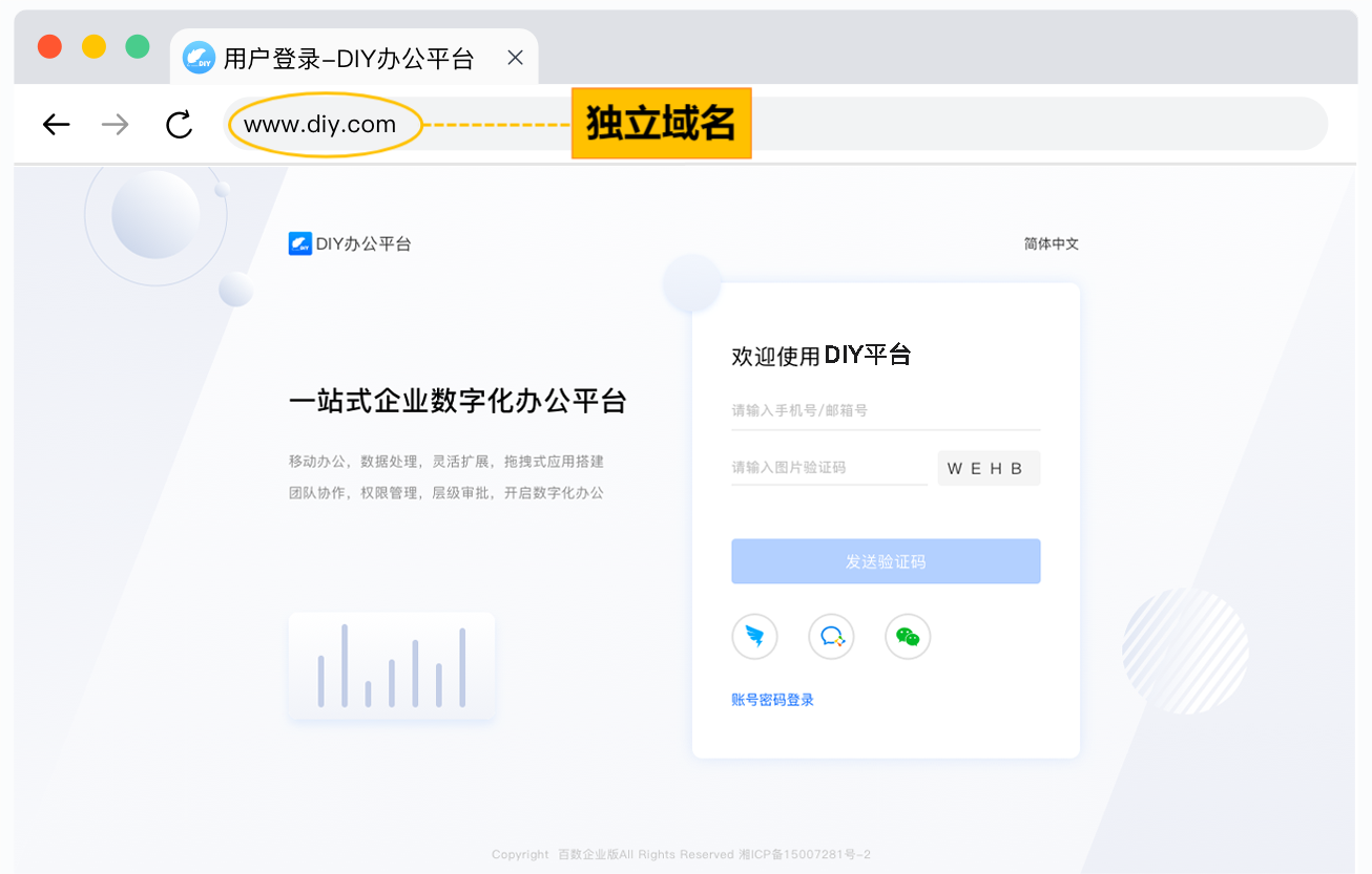 DIY.com,可以使用企业自己的域名,彰显品牌高度,提升品牌权威