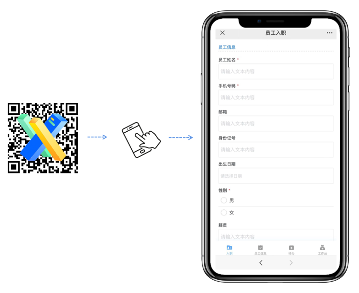 制作完成的员工入职信息表,可以以链接或二维码的形式发送给新入职员工,直接在线填写,方便快捷。