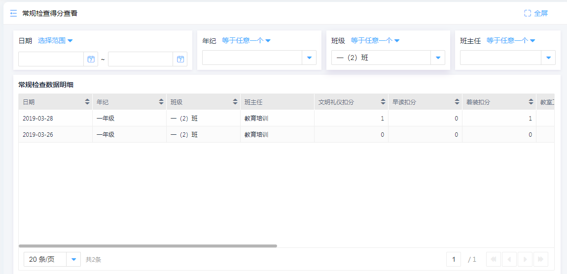 过去学校对于仪容仪表、卫生情况、做操情况的记录常用纸质方式记录,不利于信息的整理与回顾。使用电子表单录入更方便的同时,也可以根据日期、班级等参数进行筛选查看。