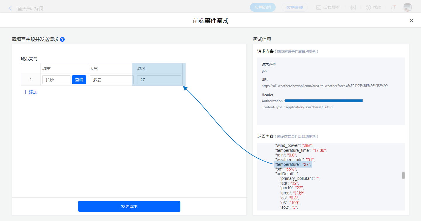 那么,只需要将子字段“天气”的返回值设置为: