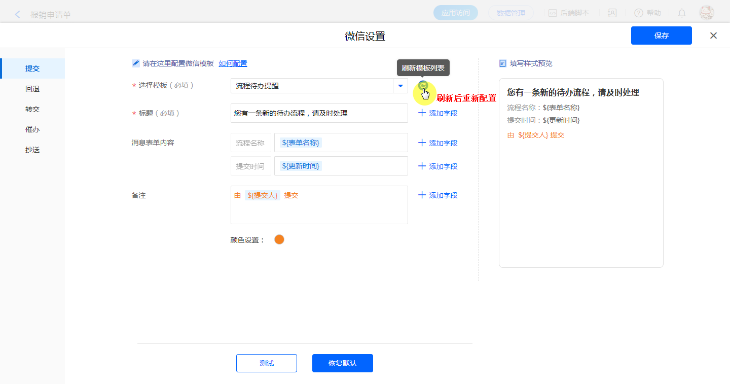 设置模板消息