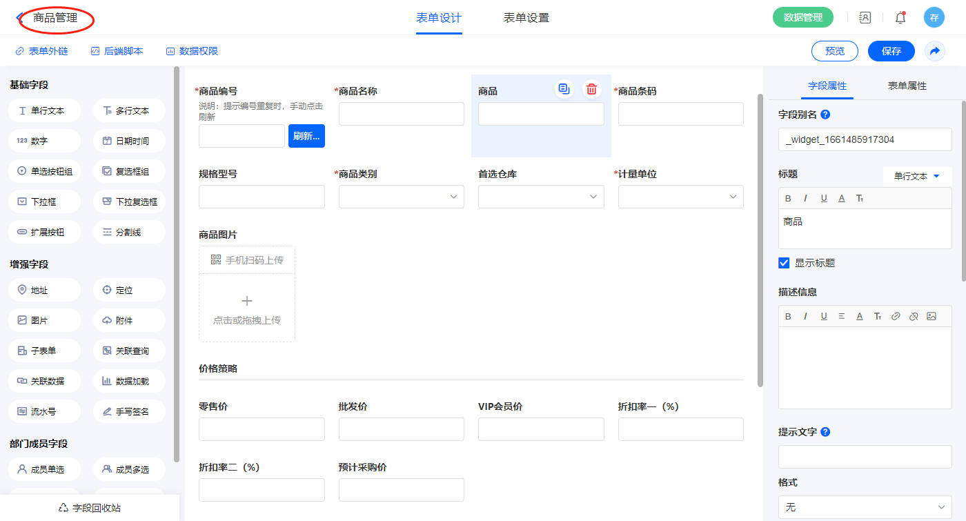 该表设置见云进销存-采购管理表单【商品管理】字段及表单属性设置章节介绍;