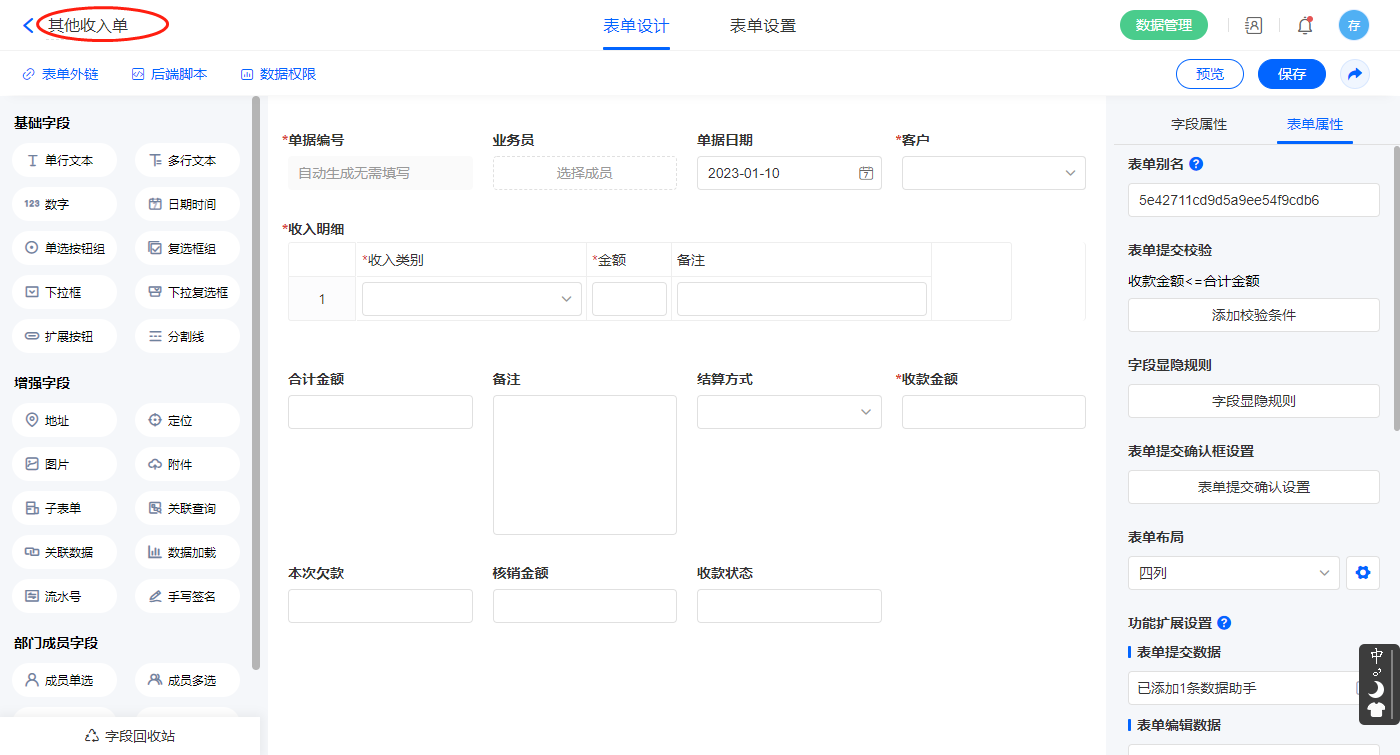 - 2.10、表单【其他收入单】字段及表单属性设置