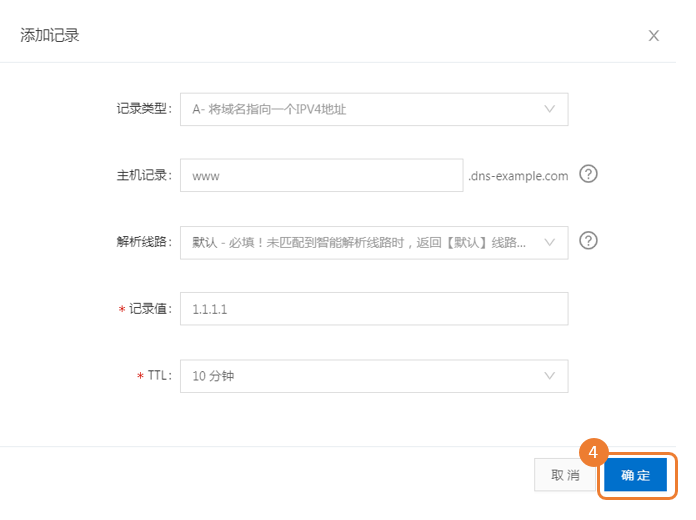 创建 www.dns-example.com 的子域名,并将此域名指向网站服务器IP地址。