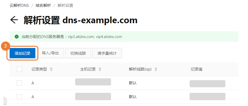 首先在解析设置页面,点击添加记录按钮