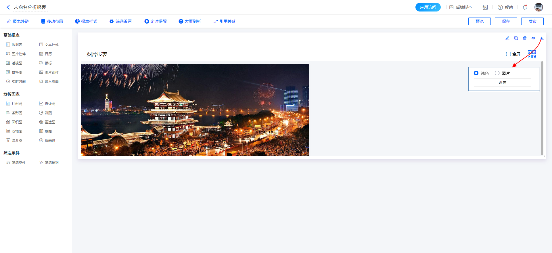 报表设计页面,拖动「嵌入页面」到报表中,如图:
