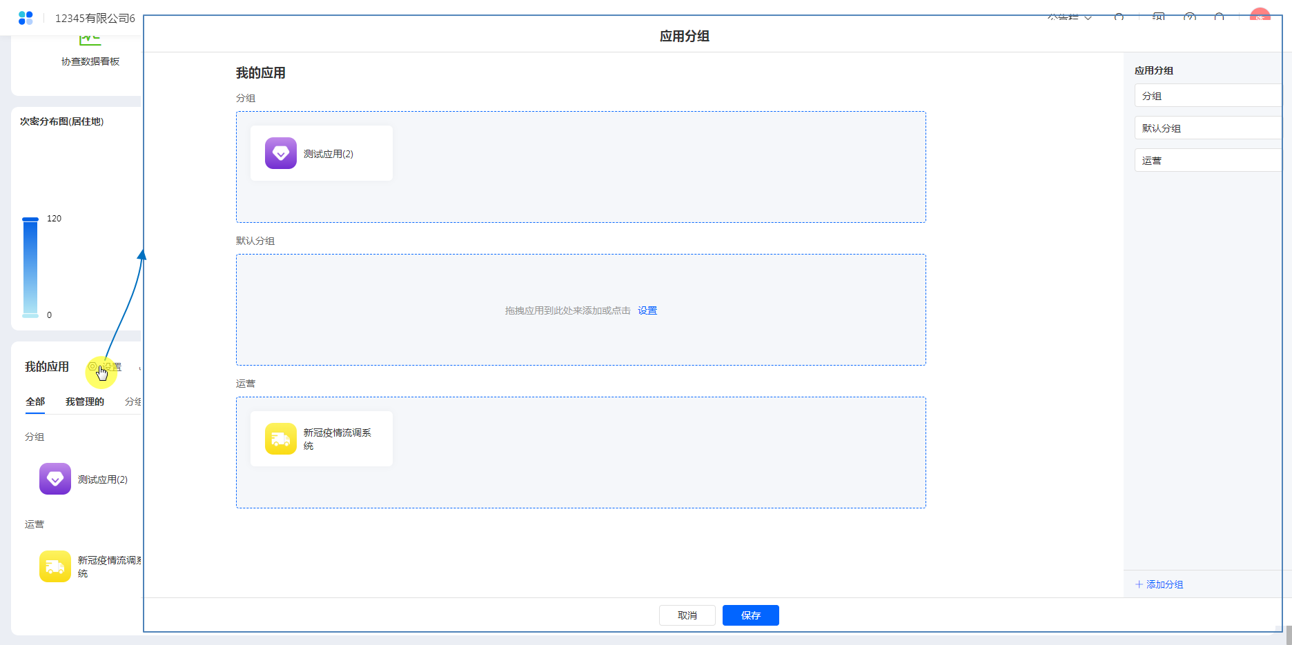 应用设置下,支持管理应用分组以及调整分组下的应用。