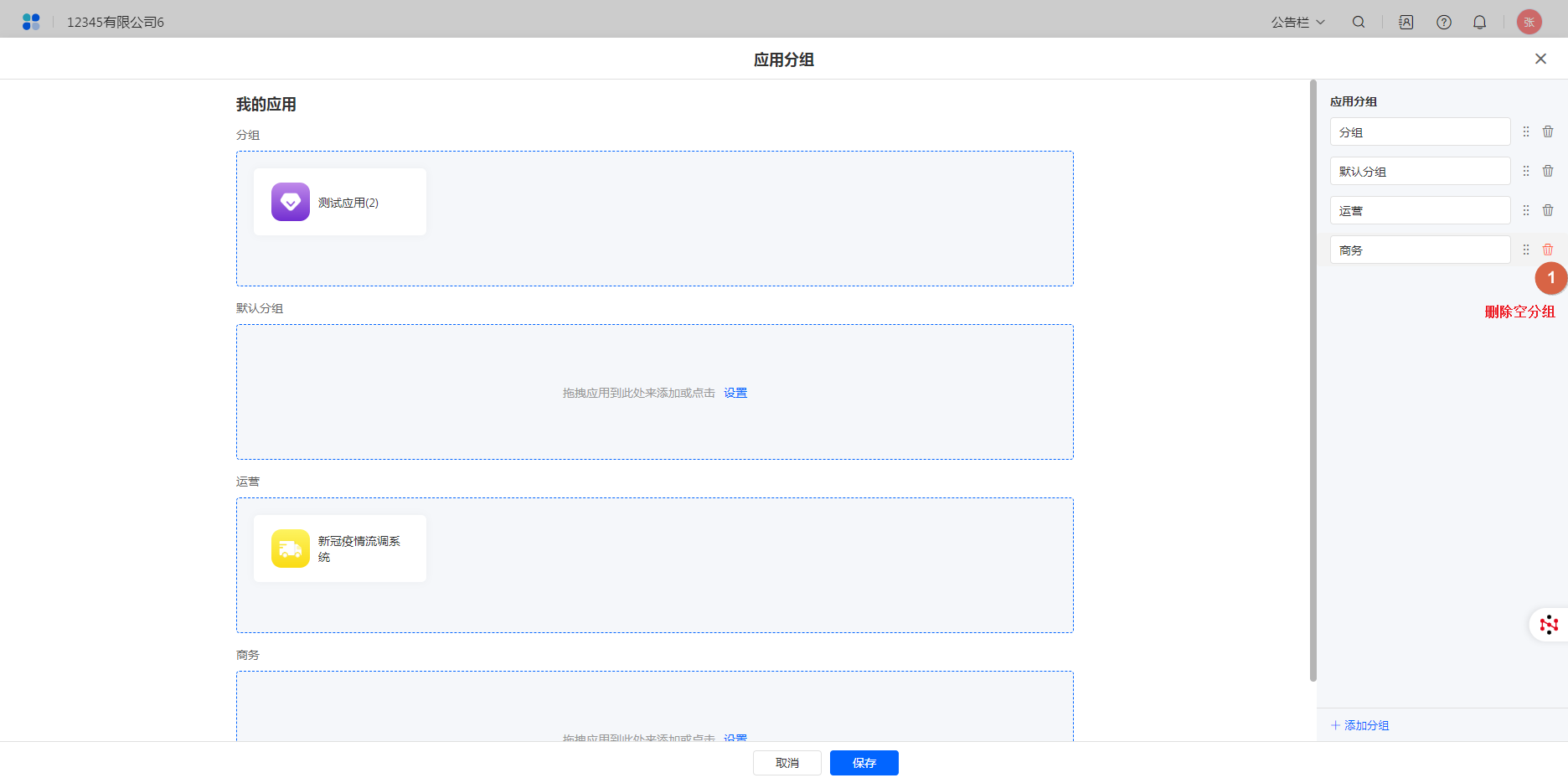 对于不需要的分组可以进行删除,删除前需要将当前分类下的应用清空。