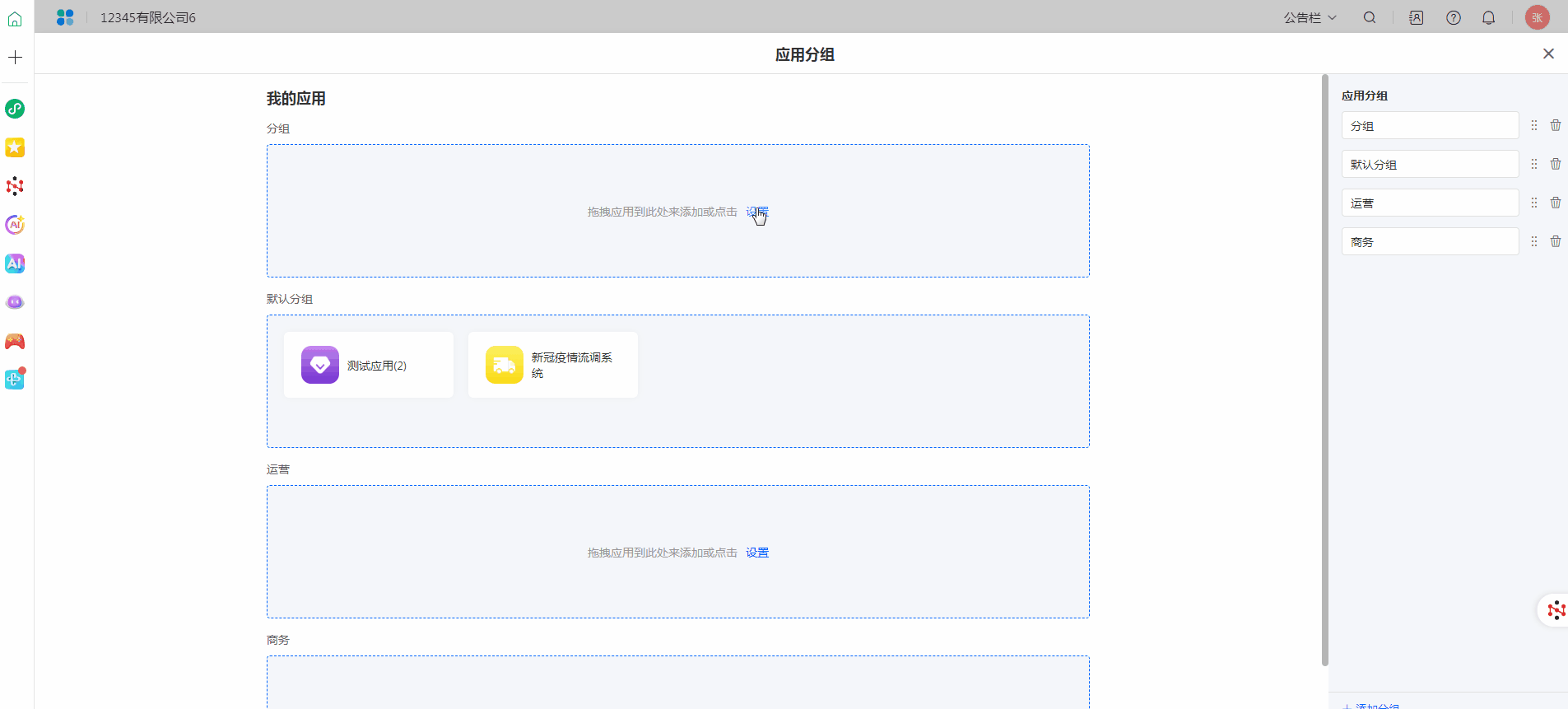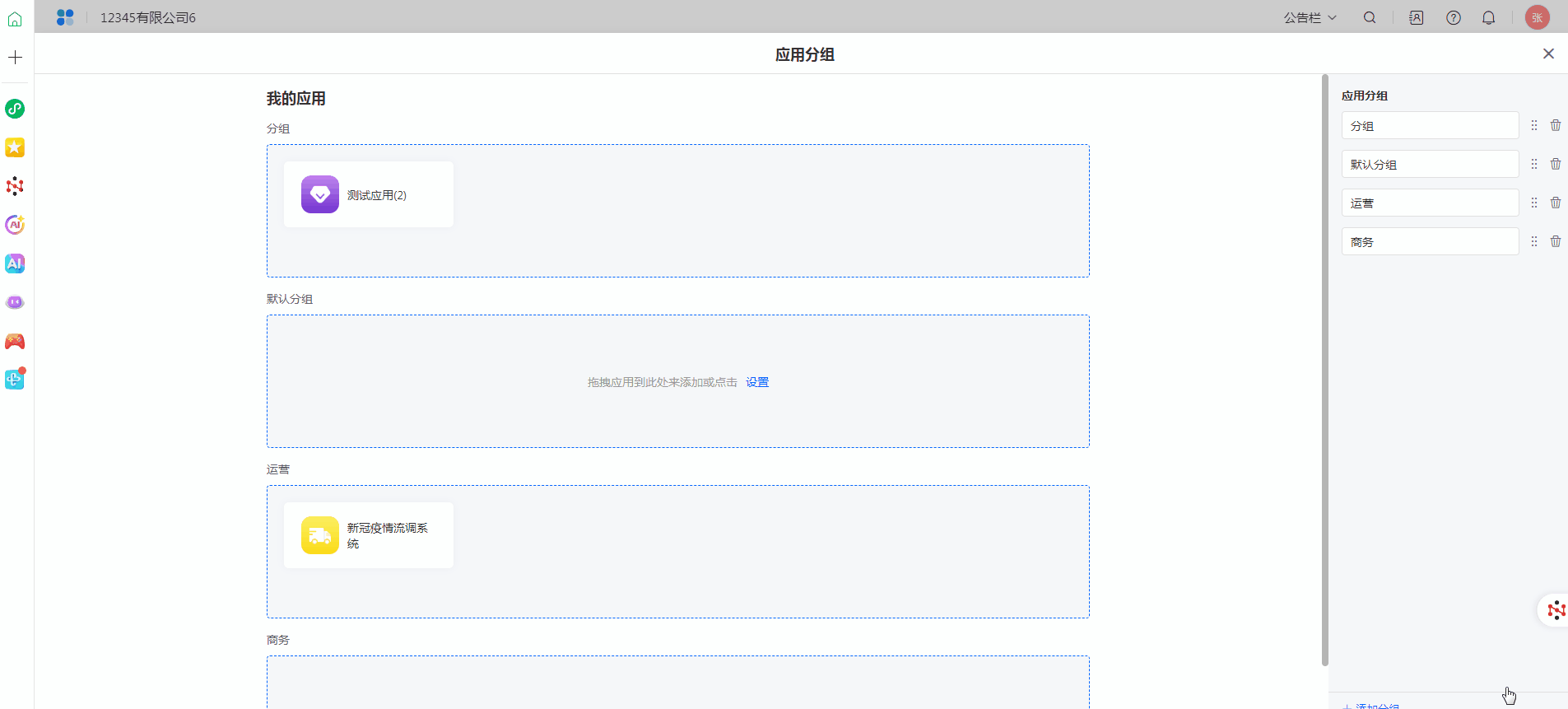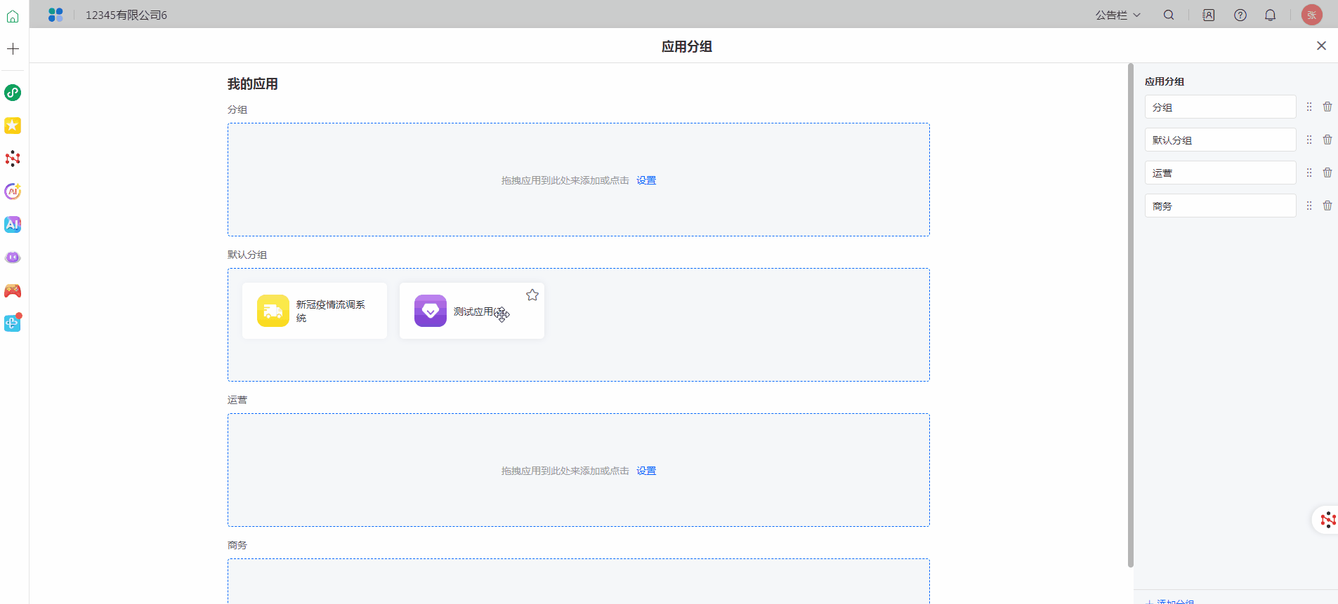注意:当分组中的应用为空时,在工作台访问-我的应用中,不展示该分组。