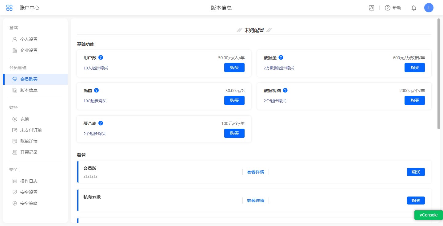 若当前会员套餐不足以支撑正常使用,可在会员购买进行升级。