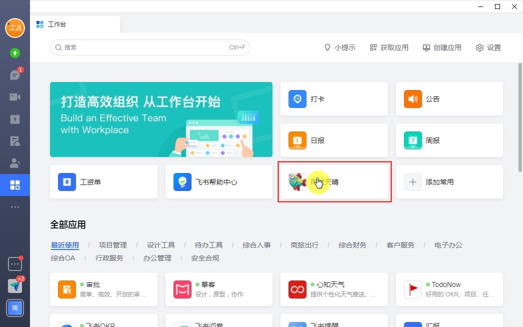 - 在工作台-全部应用下,找到创建的应用,点击该应用,可直接进入系统。
