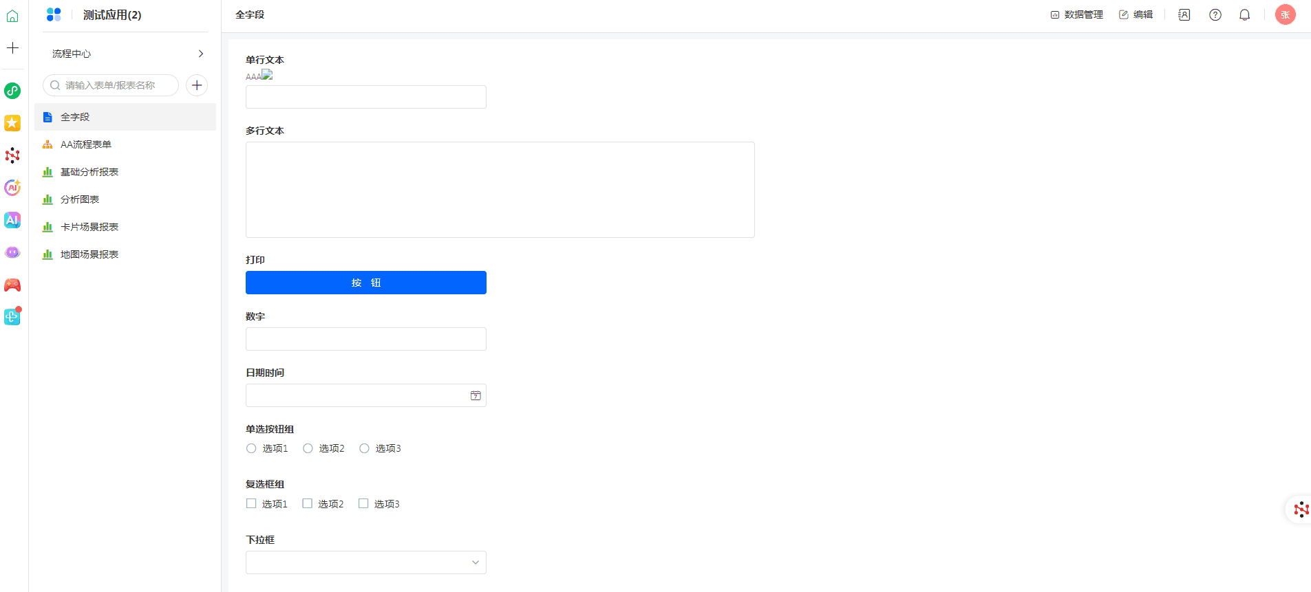 注意:删除应用会将该应用内部的表单、报表、数据一并删除,且不可逆,请慎重操作!