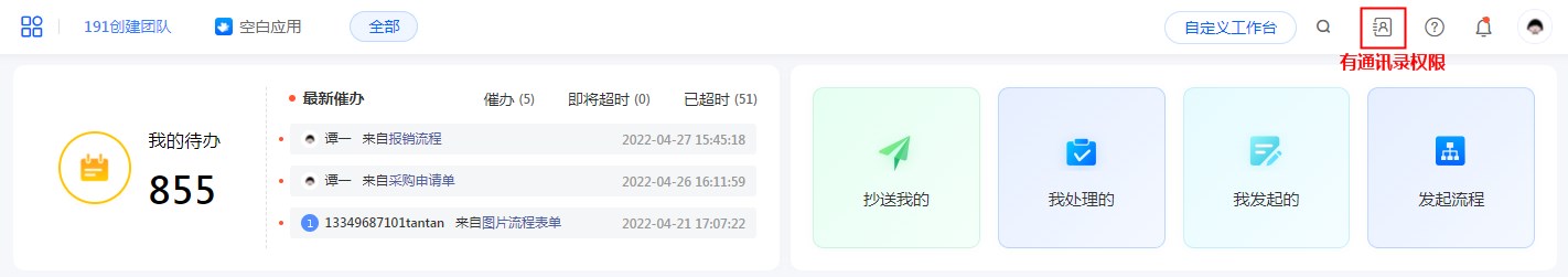 功能权限:开启【通讯录管理】,普通管理员可以进入通讯录进行相关权限操作;关闭则无法进入通讯录。