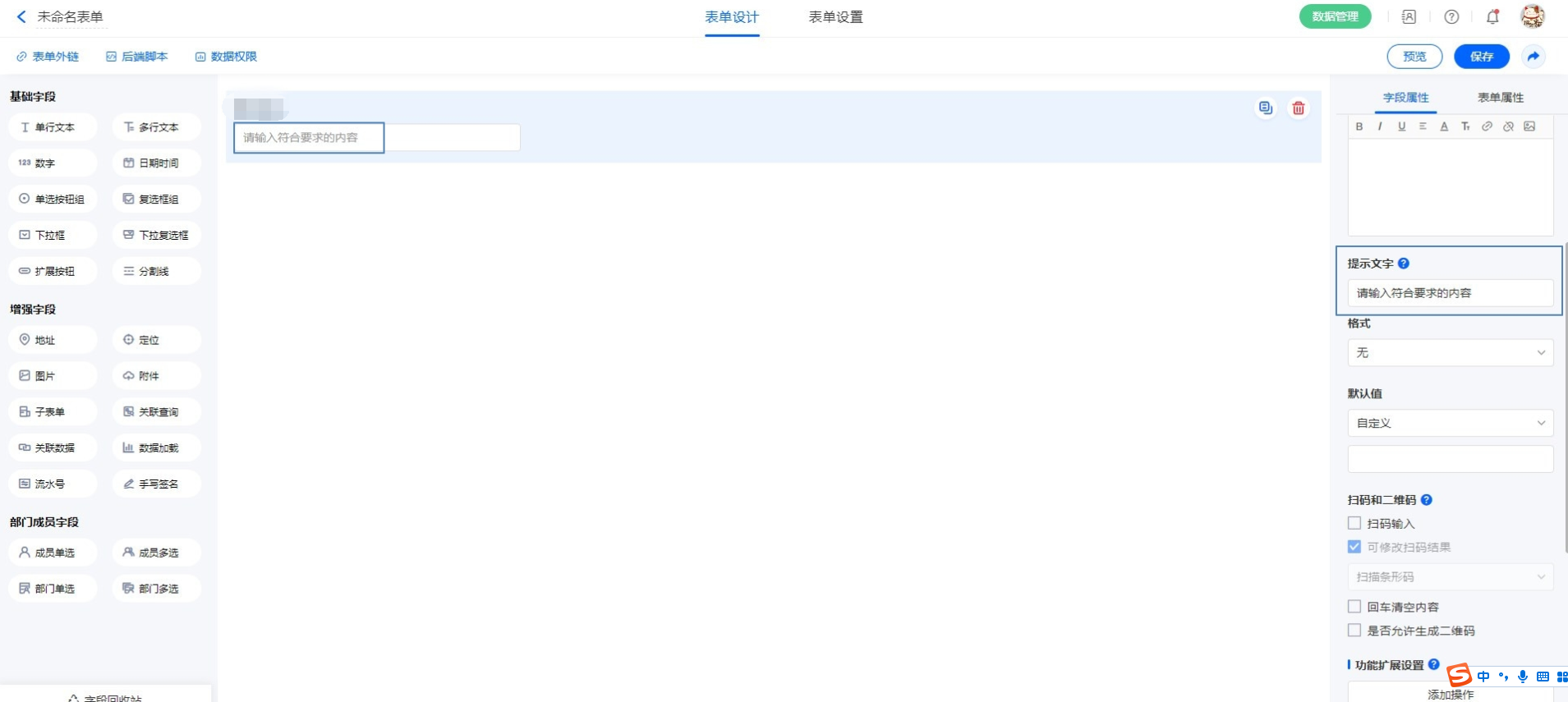提示文字是对表单输入框内容的一个辅助说明,通过简短文字提示,可让数据填报人员更快速地识别到需要录入的内容,进而提升数据录入效率。