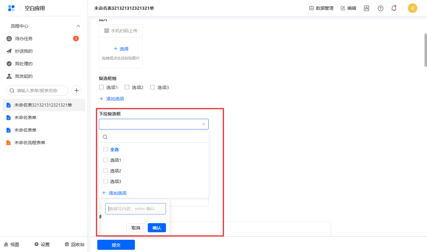 勾选允许成员填写时,添加新选项成员增加自定义选项