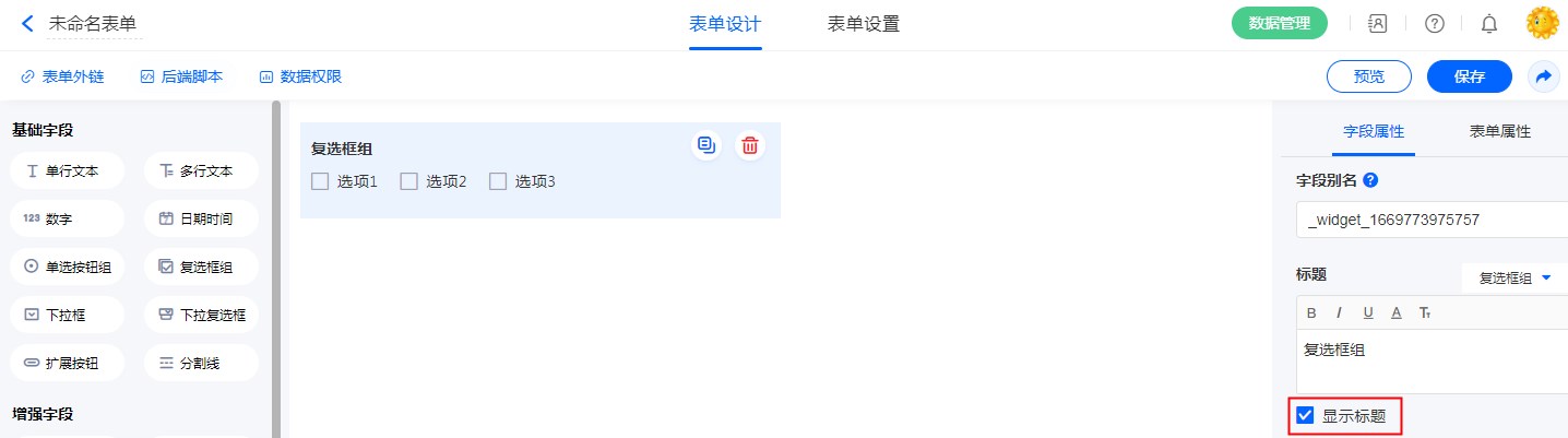“标题”可以修改字段名称。