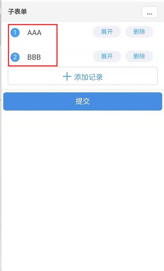 子表单内某一字段为子表单数据标题,在移动端使用时,无需点开子表单数据即可直接看到子表单内的指定字段信息。
