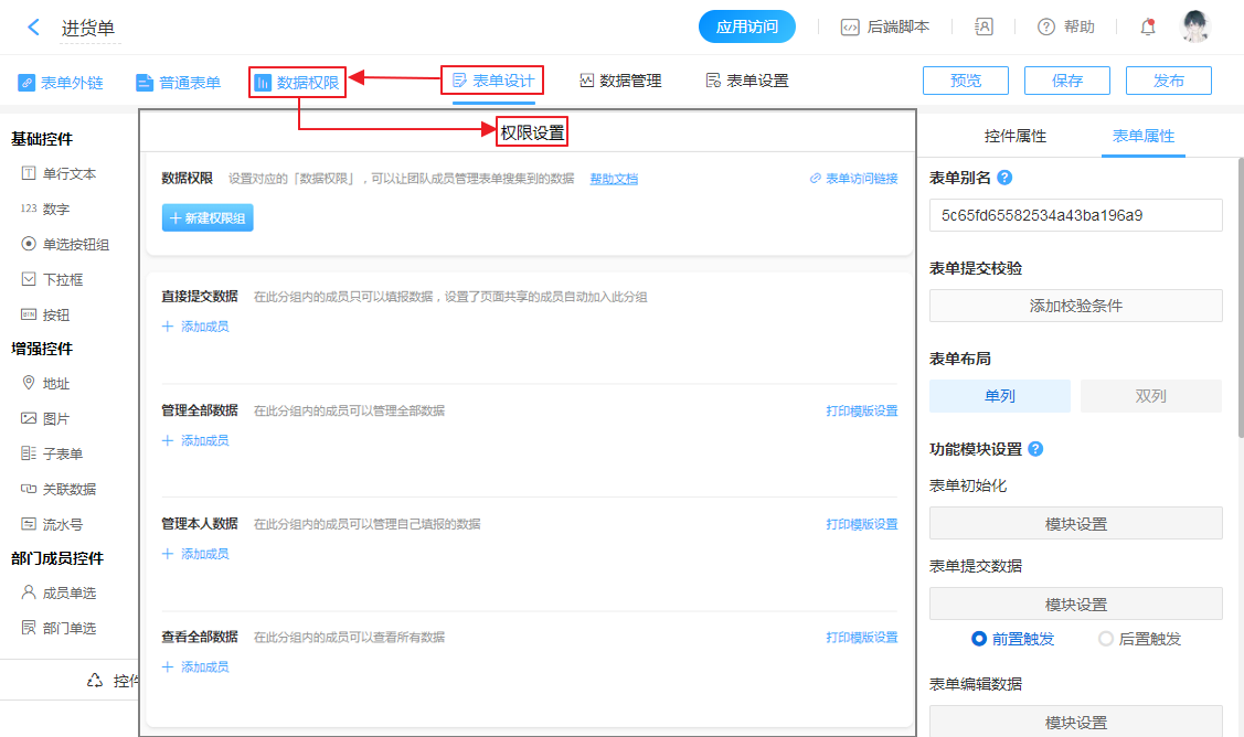 普通表单数据权限详情见普通表单数据权限。