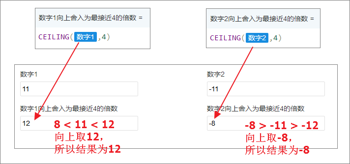 使用方式同 FLOOR,只是一个向下取最接近的,一个向上去最接近的值。