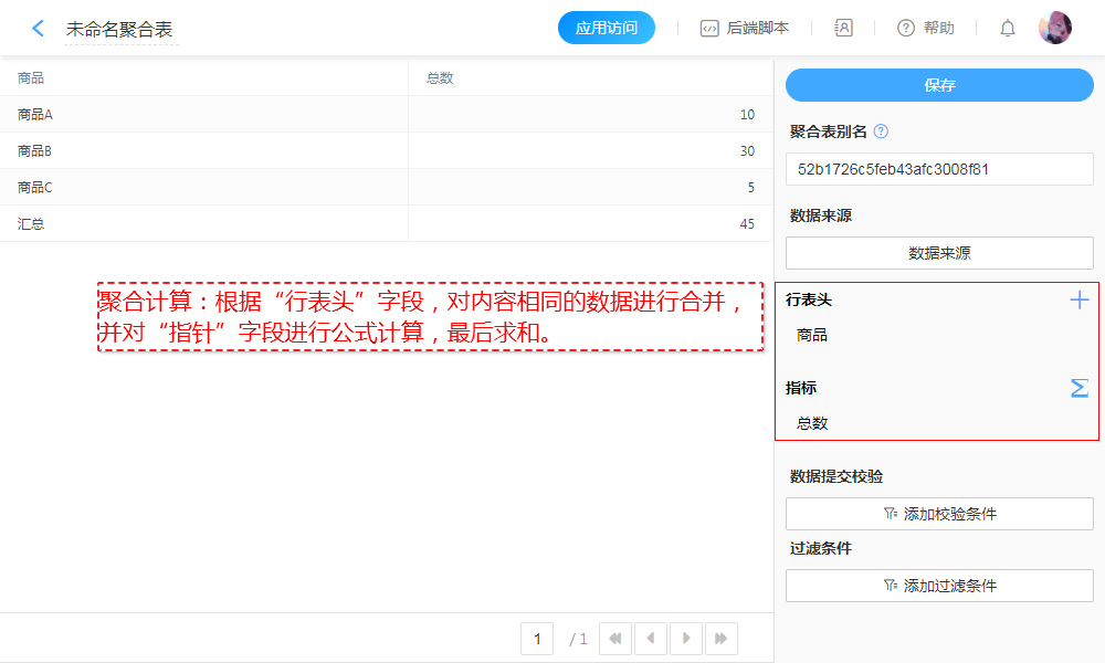 | 应用管理(进入应用设计页面) > 设置 > 聚合表 |