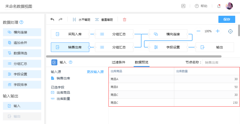 数据源默认配置下,是关联全表数据,可以配置“过滤条件”进行筛选符合条件的数据传入视图使用。
