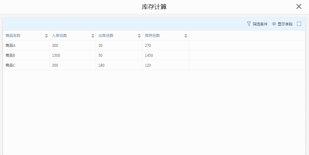 预览数据与表单“数据管理”面板类似,支持“过滤条件”与“显示字段”操作。