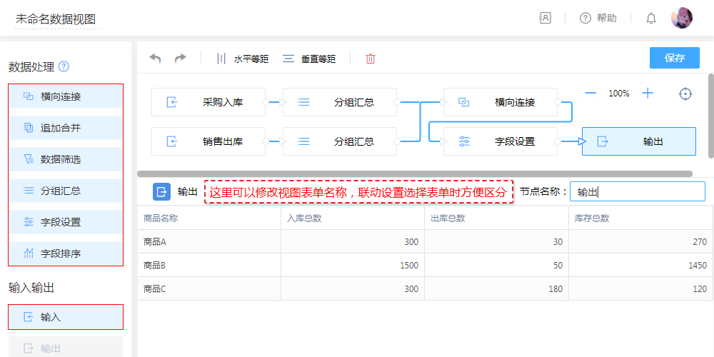 数据视图的标题取自数据流的「输出节点」的名称。